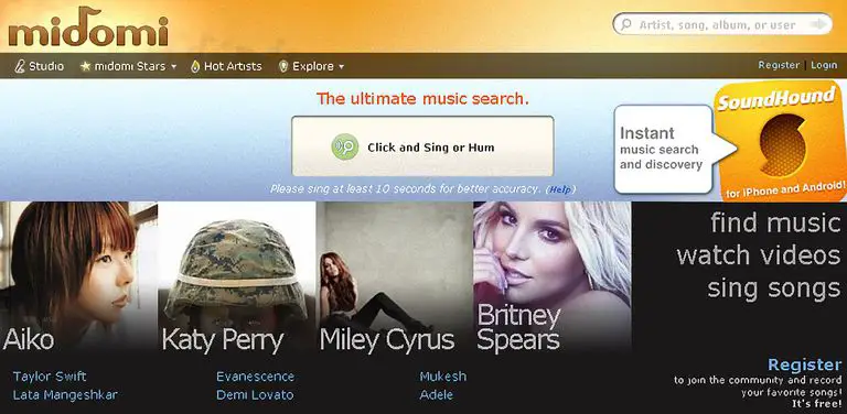 Avec Shazam, Midomi peut être l’un des outils en ligne permettant d’identifier les chansons les plus anciennes et les plus populaires au monde. Sa fonction est simple et efficace : juste en accédant à sa plateforme, nous devrons activer les autorisations pour utiliser notre microphone et chanter ou jouer une chanson afin que Midomi la reconnaisse et vous propose une liste de détails qui s’y rapportent.