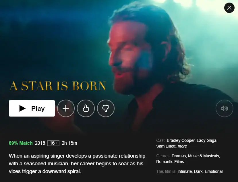 Cependant, comme mentionné, A Star Is Born est disponible sur Netflix dans d’autres pays, notamment au Canada et au Royaume-Uni.
