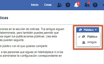 - Dans cette zone, vous verrez un bouton pour changer la configuration d’Amis à Public , vous devez appuyer dessus et changer la configuration en » Public «.