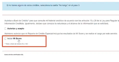 Si vous voulez connaître votre pointage de crédit, vous devez d’abord obtenir le rapport de crédit spécial et payer le prix de 58,00 $ pesos pour l’acquérir. Grâce à ces informations, vous pourrez connaître l’état de votre crédit afin d’évaluer la probabilité qu’une institution financière vous approuve pour un nouveau crédit.