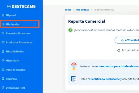 Pour savoir si vous êtes dans le DICOM, vous devez entrer sur son site officiel , entrer dans la section « Achat en ligne », appuyer sur « Acheter » et rechercher l’option qui indique « Obtenir le rapport de la loi 20 575 ». Dès lors, vous n’avez plus qu’à saisir vos données et obtenir le rapport gratuitement . De cette façon, vous pourrez identifier si vous êtes en retard avec une entité externe et quelle est la dette totale à payer afin que vous restiez solvable et qu’ils puissent approuver de futurs crédits.