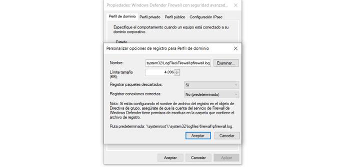 Ce journal dont nous disposons dans la route précédente, nous permettra de savoir en détail tout ce qui se passe en interne dans le pare-feu Windows. Si nous avons un problème de connectivité ou lors de l’utilisation d’une application, nous devrons consulter ce journal ou cet enregistrement pour vérifier que tout fonctionne correctement.