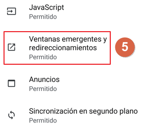 Effectuer ces actions à partir des paramètres consiste à désactiver l’option qui autorise les pop-ups et les redirections, ainsi qu’à désactiver l’option qui autorise les publicités . Cela aidera à contrôler le contenu que les pages visitées peuvent vous montrer. Vous pouvez configurer votre équipement comme suit :