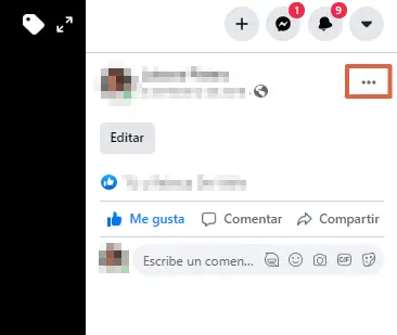 - Sélectionnez la photo que vous souhaitez supprimer et cliquez sur les trois points horizontaux à côté de votre nom, en haut et à droite.
