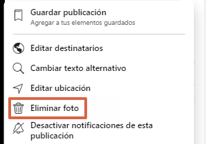 Remarque : à la fois dans la version Web et dans l’application, vous ne pouvez supprimer que les photos que vous avez téléchargées dans votre profil. Ceux qui ont été uploadés par d’autres comptes et que vous avez été tagué, sont de la responsabilité du compte qui l’a uploadé, vous ne pouviez supprimer que la mention .
