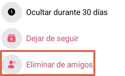- Supprimer de vos amis : Vous supprimerez le profil en question de votre liste d’amis et vous ne pourrez pas voir votre contenu, sauf s’il est public.