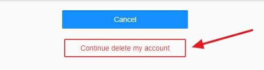 - Sur la page d’avis de suppression de compte, appuyez sur le bouton » Continuer à supprimer mon compte » situé en bas du site.