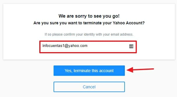 - Saisissez votre adresse e-mail dans le champ « Entrez votre adresse e-mail » puis cliquez sur « Oui, résilier ce compte ».
