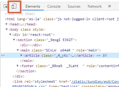 - Cela ouvrira une fenêtre de code où vous devrez cliquer sur l’ icône des appareils ( Toogle Device Toolbar ).
