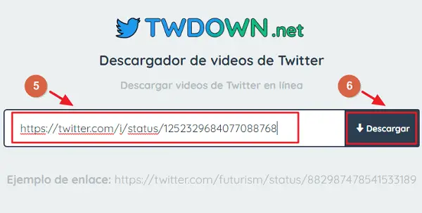 - Vous entrez par ce qui suit ( www.downloadtwittervideo.com/es/ ).