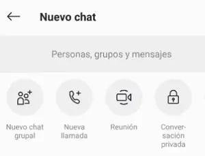 - Une fois cela fait, cliquez simplement sur l’ icône en forme de crayon et vous trouverez les boutons pour démarrer un nouveau groupe ou une discussion privée, un appel ou une réunion.