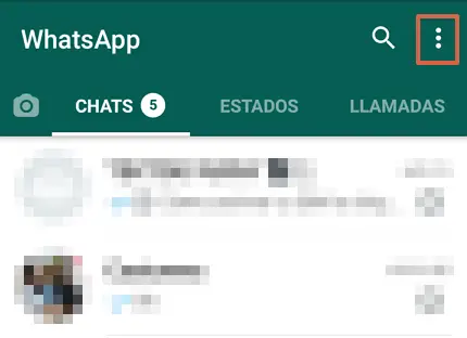 - Ouvrez WhatsApp et appuyez sur les trois points verticaux dans le coin supérieur droit.