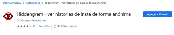 Une autre option pour afficher les histoires Instagram à leur insu à partir de votre navigateur Web consiste à utiliser une extension Google Chrome. L’un des plus recommandés est Hiddengram , qui peut être facilement installé à partir du magasin d’extensions et sera activé automatiquement.