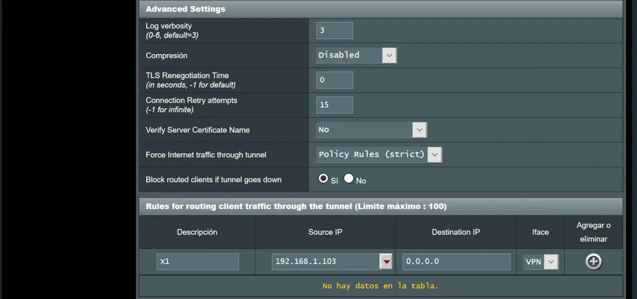Lors de la configuration du client OpenVPN sur le routeur, nous pouvons choisir que l’adresse IP privée de la Smart TV accède à Internet via VPN, contrairement aux autres appareils de notre maison. Avec les politiques de routage, nous pouvons décider où nous voulons que le trafic circule.