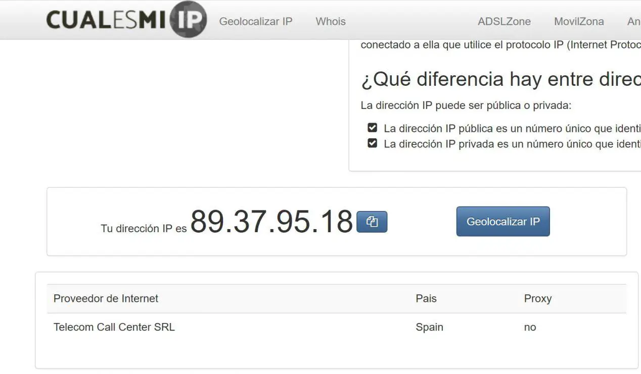 La première chose que nous allons vérifier est que nous naviguons sur Internet avec une adresse IP publique du serveur OpenVPN sur lequel nous nous sommes connectés, comme vous pouvez le voir ici :