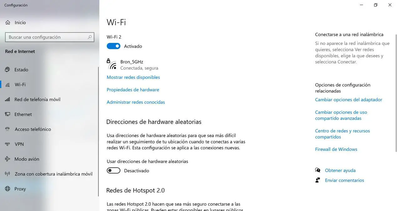 Dans les systèmes d’exploitation Windows, dans la section Wi-Fi, nous pouvons voir que nous sommes parfaitement connectés à un réseau Wi-Fi avec le protocole WPA2-Personal habituel :