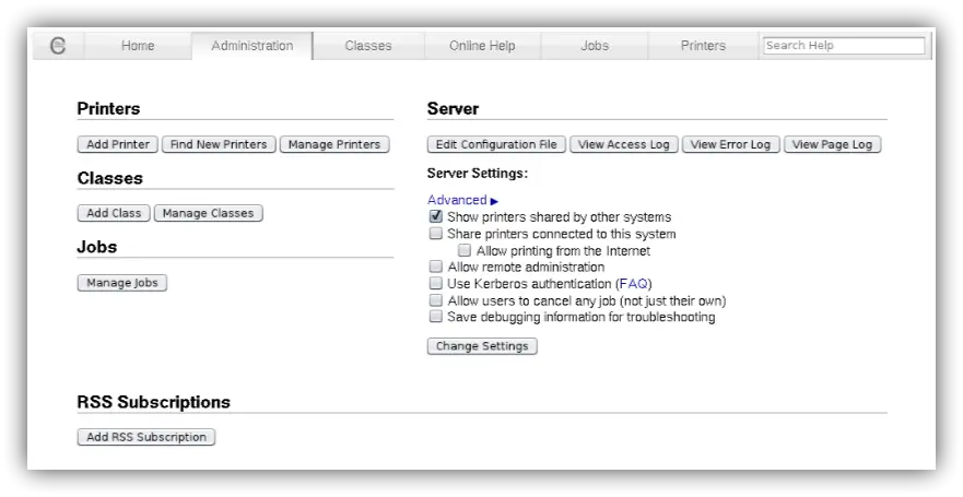 Il ne reste plus qu’à ajouter l’imprimante au serveur CUPS pour que nous puissions nous y connecter via SAMBA. Pour ce faire, nous entrons simplement l’IP du Raspberry Pi dans notre navigateur web suivi du port 631 comme nous l’avons dit précédemment et dans la configuration qui apparaît nous passerons à l’onglet «Administration».