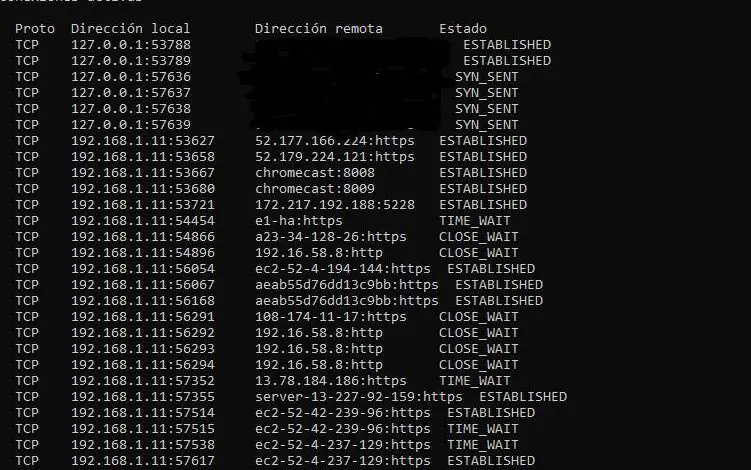 La commande netstat est utilisée pour évaluer tout ce qui concerne l’activité de connectivité réseau. Cependant, cela n’inclut pas ce qui peut arriver au routeur Wi-Fi. Simplement, vous accédez au CMD ou à l’invite de commande> netstat> Entrée . Chaque enregistrement affiché affiche des données concernant toutes les connexions réseau actives sur l’ordinateur, le port auquel il est associé, l’adresse externe et le processus de connexion réseau auquel il appartient.