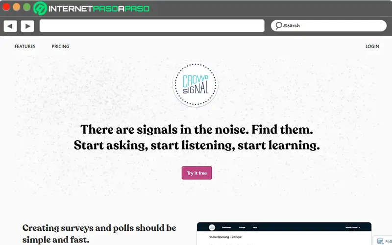 Il s’agit d’une page Web qui dispose des outils nécessaires pour que les mêmes utilisateurs réalisent leurs enquêtes auprès des employés, des clients, des amis, des visiteurs ou de toute personne qui, selon eux, correspond à leur public cible. En tenant compte de cela, il est défini comme un outil facial et intuitif qui contient une grande variété de questions à choisir . Ceci, sans avoir à installer de programmes tiers et sans rien payer ; Eh bien, vous n’avez qu’à vous y inscrire.