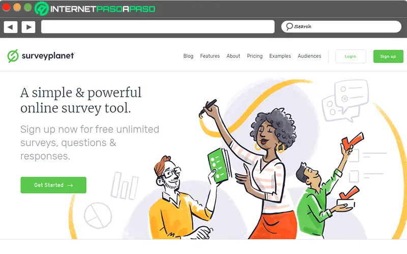 Comme une autre alternative, nous vous présentons cet outil appelé Survey Planet qui compte de nombreux utilisateurs dans le monde et vous indique que vous devez vous inscrire sur sa plateforme pour obtenir des enquêtes, des questions et des réponses gratuites et illimitées . En ce sens, il est classé pour héberger un large ensemble d’utilitaires avec lesquels il est possible de concevoir une enquête à un niveau professionnel et de gérer ses résultats en temps réel .