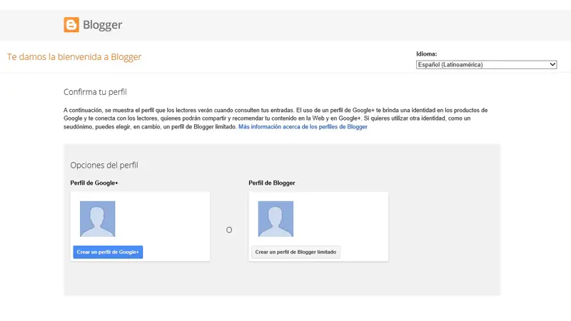 Blogger vous demande d’indiquer le type de profil que vous souhaitez montrer aux autres lecteurs. Ici, vous pouvez choisir entre un profil Google+ , que vous devrez créer en cliquant sur » Créer un profil Google+ «, ou un profil Blogger , pour vous inscrire en cliquant sur «Créer un profil Blogger limité».