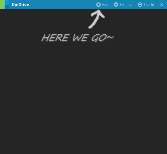 La première fois que nous l’exécuterons, une flèche apparaîtra en haut avec le texte en anglais «Here WE GO» afin que nous puissions ajouter les comptes de nos services de stockage en ligne que nous utilisons.