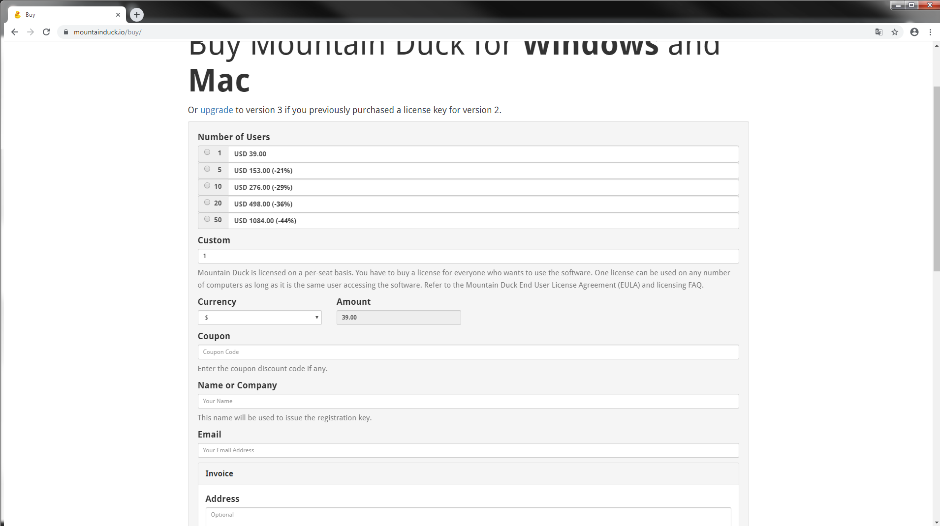 Pour utiliser Mountain Duck, la première chose que nous devons faire est d’aller sur leur site Web et de télécharger le programme d’installation. Il est disponible pour Windows ou Mac et vous pouvez le télécharger sur ce lien :
