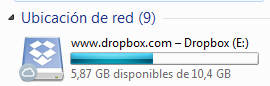 Une fois entré, l’explorateur Windows s’ouvrira et un dossier contenant nos fichiers Dropbox apparaîtra. Si nous allons dans «Ordinateur», nous aurons dans «emplacement réseau» un disque dur monté avec notre dossier Dropbox pour commencer à travailler facilement avec.