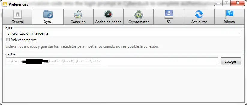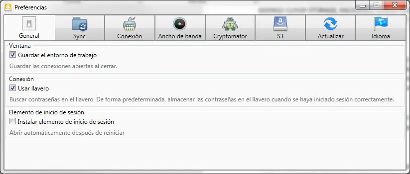 Dans l’onglet général, nous avons les options pour enregistrer les connexions avec les différents services que nous avons connectés, utilisez un porte-clés pour enregistrer les mots de passe d’accès et la possibilité de faire fonctionner le programme automatiquement au démarrage de Windows. Dans l’ onglet Sync , nous avons la possibilité de choisir comment nous voulons le synchroniser, que ce soit en ligne ou intelligemment. Nous avons également la possibilité de lui permettre d’indexer les fichiers.