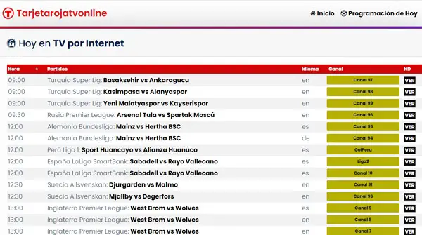 Tout son contenu est distribué dans une longue liste à laquelle vous avez accès simplement en entrant dans le portail, en plus d’une série de données importantes, telles que l’heure de transmission et la langue . De la même manière, vous retrouverez le bouton «Voir» situé à côté du numéro de la chaîne TV. Il convient de mentionner que cela peut prendre plusieurs clics avant de pouvoir profiter du jeu que vous voulez, ce qui peut être très ennuyeux.