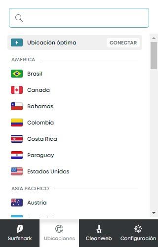 Tout ce que nous avons à faire est d’ouvrir cette extension, de vous connecter, puis de cliquer sur «Emplacements» pour sélectionner un serveur VPN situé aux États-Unis. Une fois que nous cliquons sur les États-Unis, différentes villes et états des États-Unis apparaîtront également, afin que nous puissions choisir celui que nous voulons. Une autre fonctionnalité intéressante est que nous pouvons activer «Cleanweb» pour bloquer les publicités, les trackers et les logiciels malveillants.