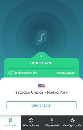 La connexion est aussi simple que de cliquer sur le serveur VPN de la ville et du pays que nous choisissons, et automatiquement après quelques secondes, nous aurons correctement établi la connexion, et cela nous montrera notre nouvelle adresse IP publique, qui est géographiquement située dans ETATS-UNIS.