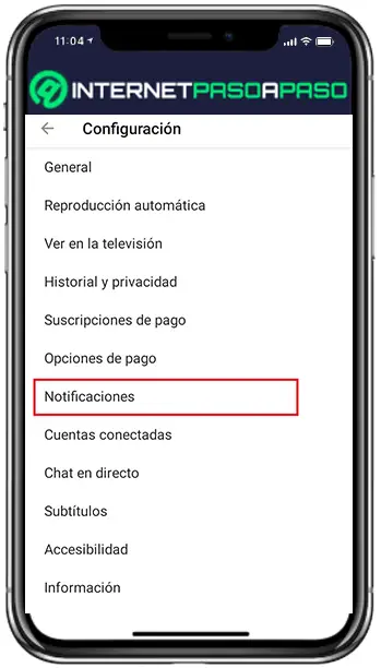 - Après cela, une liste avec de nouvelles options sera affichée et parmi elles, vous devez cliquer sur celle qui indique «Notifications» . Pour ce faire, procédez à l’ajustement de ce paramètre d’application.