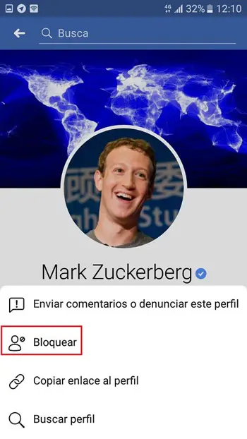 - Recherchez la page par son nom et entrez , il y aura son profil, sous l’image de couverture vous trouverez si vous l’avez aimé, si vous la suivez, si vous voulez la partager et enfin un bouton avec des points de suspension, choisissez ça et ça Il affichera un menu avec diverses options, allez-y dit » Bloquer «.