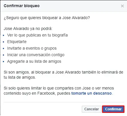 - Lisez le message qui sortira, vous pourrez voir ce qui se passera lorsque vous confirmerez le blocage, une fois que vous êtes sûr, appuyez sur » Confirmer » et c’est tout.