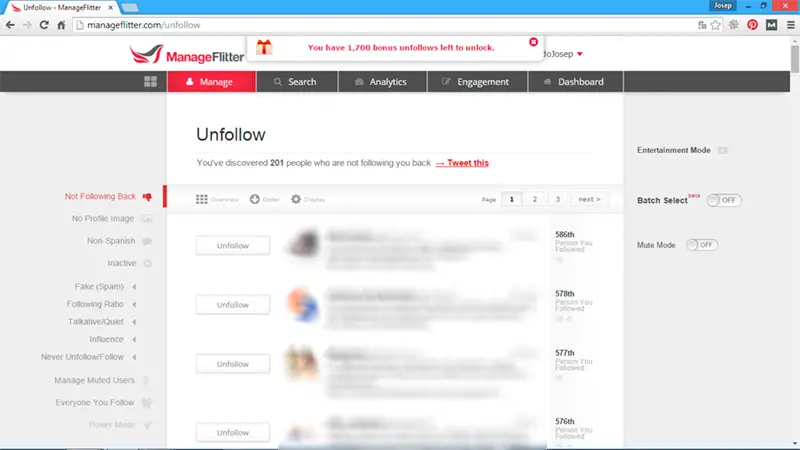 Parmi les avantages auxquels vous pouvez accéder lorsque vous utilisez Manage Flitter, vous trouverez les suivants: