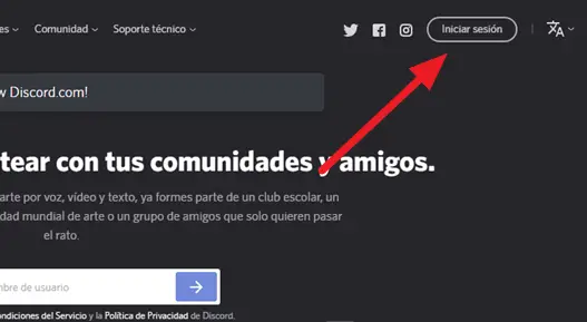 - Accéder au Le site Web principal de Discord et sur le côté droit de la barre supérieure, appuyez sur le bouton «Connexion» .