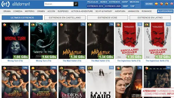C’est une autre alternative pour télécharger ou regarder des films en ligne avec une qualité HD et un son surround. Elitetorrent se caractérise par être l’un des sites avec la vitesse de lecture en ligne la plus rapide et le contenu hispanophone. Parmi sa liste de catégories disponibles dans les films figurent : horreur, suspense, comédie, drame, science-fiction, fantastique, etc.