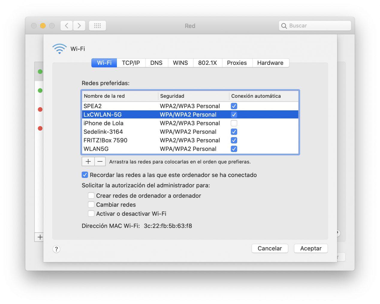 Une fois que nous sommes dans ce menu Wi-Fi, nous cliquons sur le bouton « Avancé », et tous les réseaux Wi-Fi que nous avons actuellement enregistrés sur le Mac apparaîtront. Il suffit de cliquer sur le bouton Supprimer « – » en dessous de la liste, juste à droite du bouton ajouter le réseau « + » que nous avons dans la même zone.