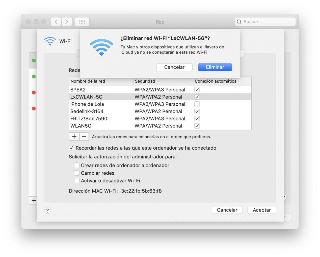 En cliquant sur le bouton « – », il nous demandera une confirmation pour supprimer le réseau Wi-Fi mémorisé, enfin, nous cliquons sur « Supprimer » et nous le ferons supprimer.
