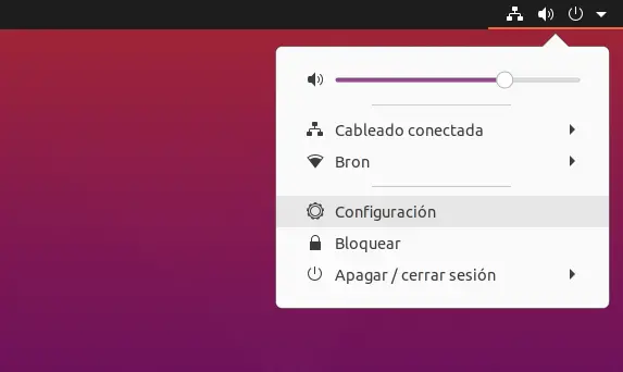 La première option pour supprimer un réseau Wi-Fi enregistré dans Ubuntu consiste à le faire via l’interface utilisateur graphique. Nous allons dans le menu Wi-Fi, ce sera dans la partie supérieure droite, et nous cliquons sur « Paramètres » :