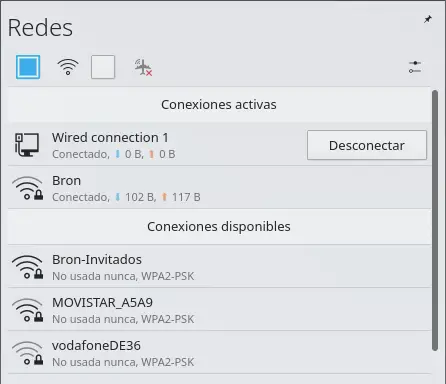 La première option pour supprimer un réseau Wi-Fi enregistré dans Debian consiste à le faire via l’interface utilisateur graphique. Nous allons dans le menu Wi-Fi, ce sera dans la partie inférieure droite si votre bureau est KDE, bien que selon l’environnement graphique choisi, il puisse être à un autre endroit.