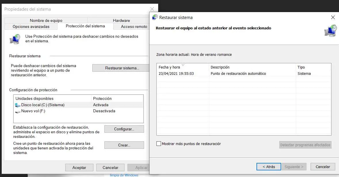 Ce que nous allons faire, c’est revenir à un point précédent où Windows fonctionnait correctement. Nous allons sur Démarrer, nous recherchons la restauration du système et nous l’exécutons. Une nouvelle fenêtre s’ouvrira avec une liste des points précédents qui ont été enregistrés. Nous devrons marquer celui qui nous intéresse et nous cliquons sur Suivant. De cette façon, nous reviendrons à un état antérieur dans lequel tout fonctionnait bien.