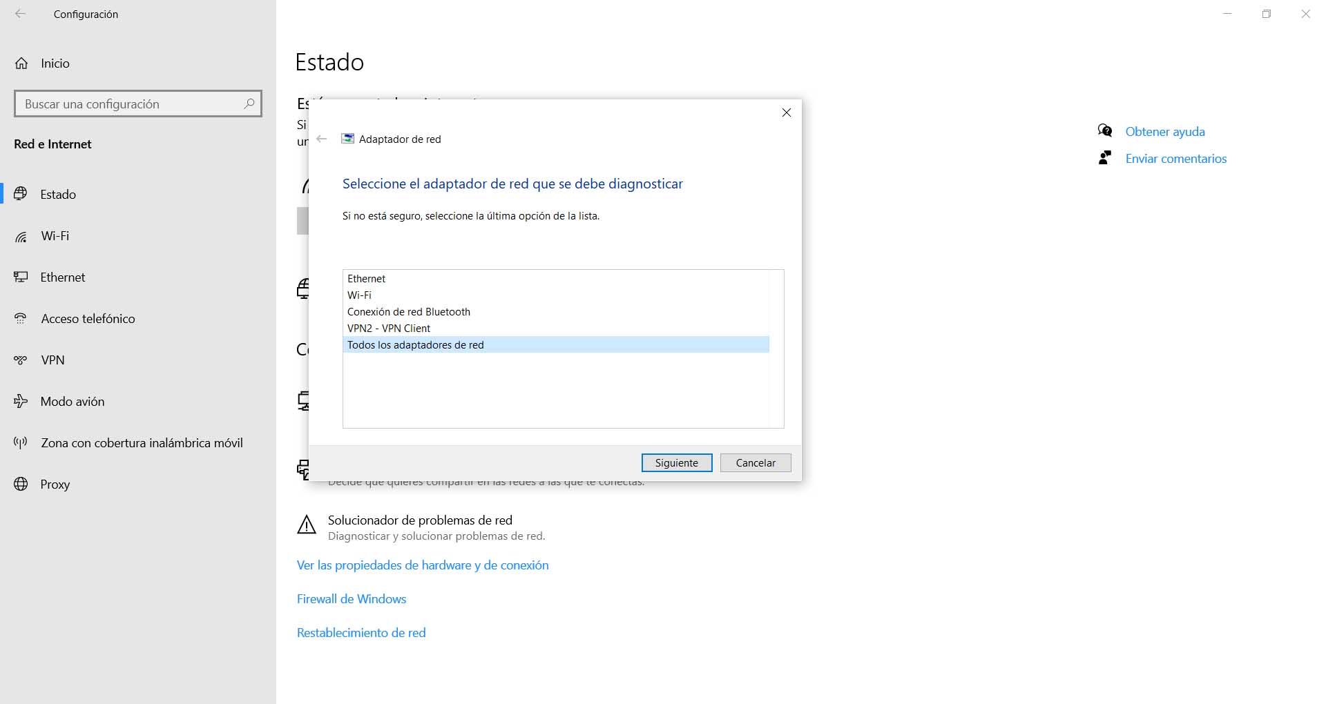 Nous devons aller dans Démarrer, nous entrons dans Paramètres et nous allons dans Réseau et Internet. Là, vous devez rechercher l’option de dépannage . Nous devons le donner et une nouvelle fenêtre s’ouvrira automatiquement pour choisir le réseau qui nous intéresse et il commencera à détecter les éventuelles défaillances qui peuvent exister. C’est un processus simple.