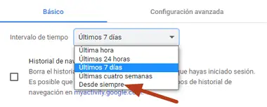 4. Vous passerez à une nouvelle fenêtre dans laquelle vous devrez cliquer sur le menu » Intervalle de temps » et sélectionner » Depuis toujours «.