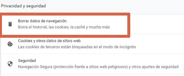 - Faites défiler jusqu’à ce que vous trouviez la section » Confidentialité et sécurité » et cliquez sur » Effacer les données de navigation « .