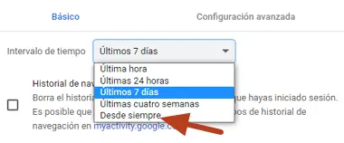 - Déroulez le menu » Intervalle de temps » et sélectionnez » Depuis toujours «.