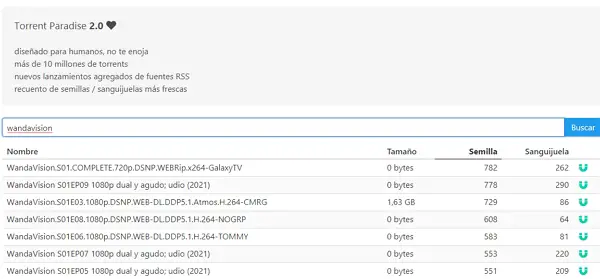 De cette façon, vous obtiendrez des centaines de résultats avec l’aide de Thepiratebay en quelques secondes et vous pourrez sélectionner celui qui convient le mieux à ce que vous recherchez. Il est important de noter que, lorsque vous cliquez sur le bouton de recherche, vous obtiendrez une liste avec la source, le titre et le poids du fichier . De plus, vous pouvez commencer à le télécharger en cliquant simplement sur l’icône de l’aimant. Maintenant, pour ce dernier, vous devez disposer d’un outil ou d’un programme tel que µTorrent.