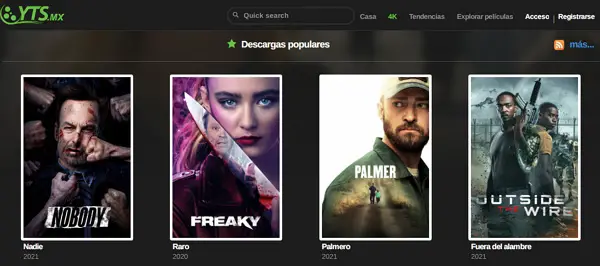 YTS a une apparence moderne et une plate – forme organisée , dans laquelle vous trouverez différentes options qui vous offriront une meilleure expérience sur le site. Il s’agit notamment d’un moteur de recherche, où vous pouvez taper le titre ou tout autre terme associé à la série ou au film que vous recherchez pour le trouver rapidement.