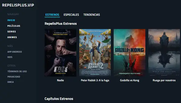 De plus, il possède sa propre application pour appareils mobiles ( app.repelisplus.vip ), compatible uniquement avec les terminaux Android , avec laquelle vous pouvez regarder ou télécharger vos séries et films préférés du creux de votre main. Vous aurez donc une option supplémentaire pour profiter du meilleur contenu, gratuitement.